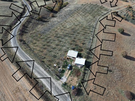 Taşınmaz içerisinde 1 adet 10 m² ev ve 1 adet 21 m² konteyner bulunmaktadır. Bahçe genelinde yaklaşık 450 adet, 10 yaşında verim çağındaki badem ağacı mevcuttur.