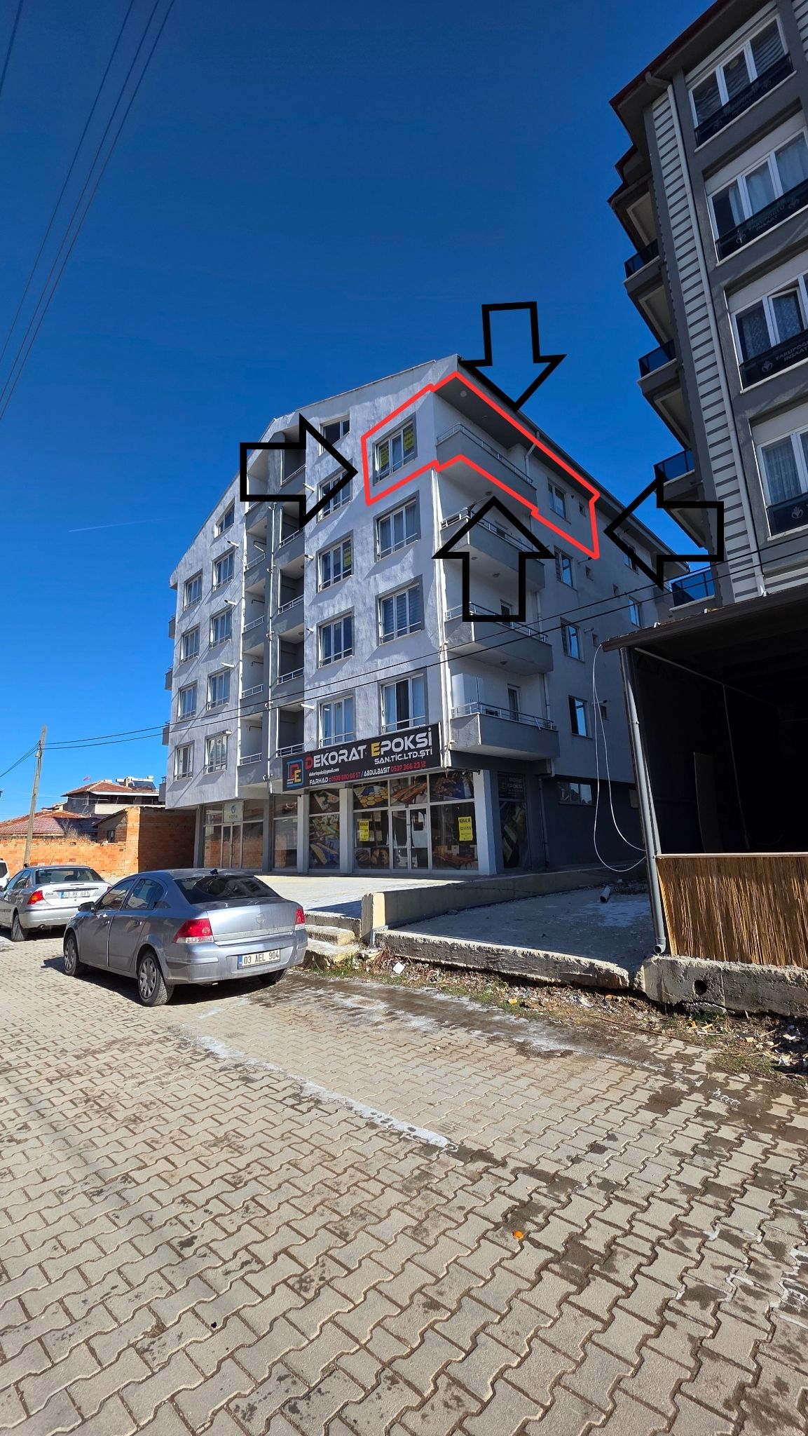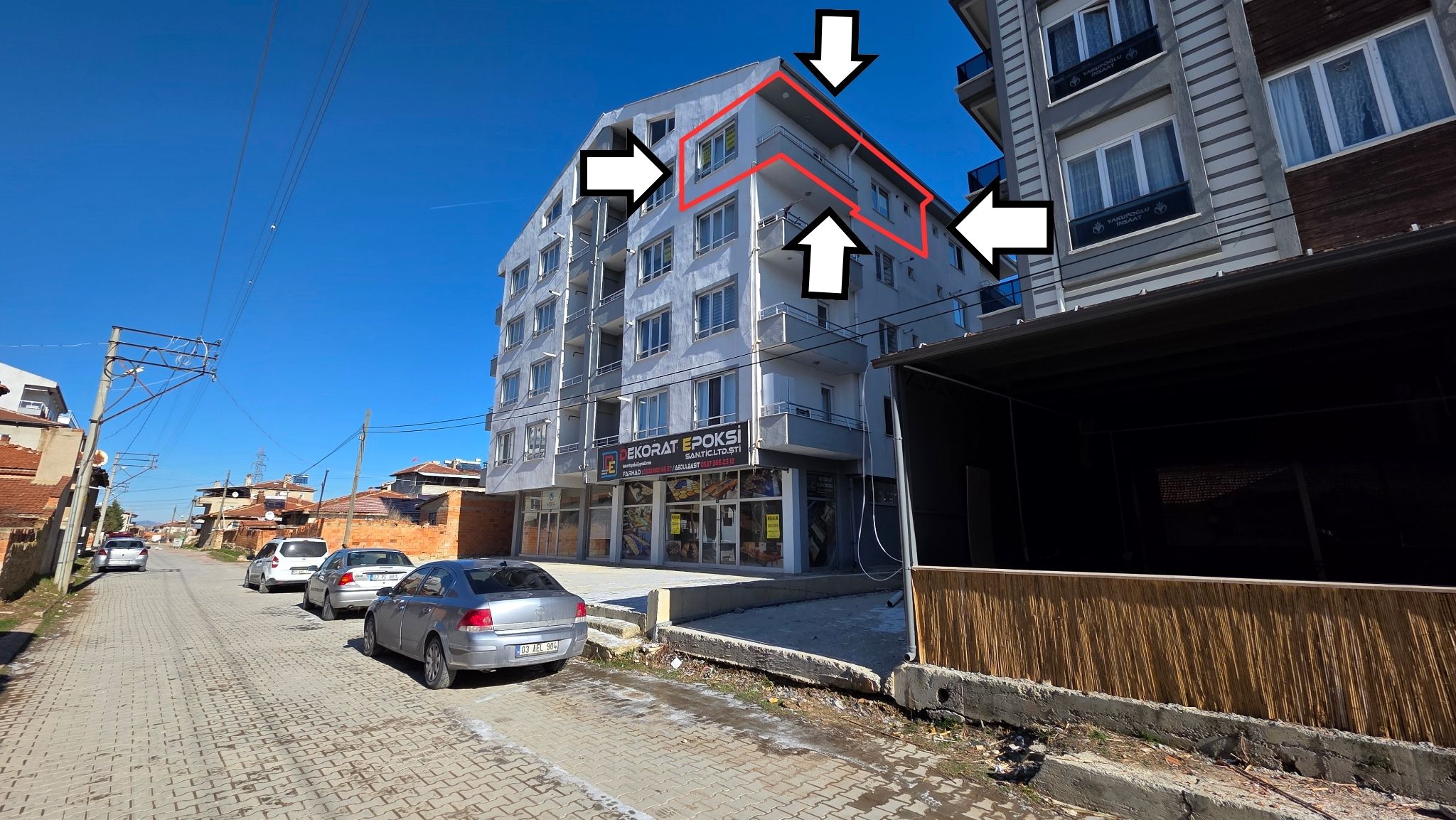 DAİRE 2 CEPHELİ CEPHELERİ ÖN CEPHESİ BATI YAN CEPHESİ GÜNEYE BAKMAKTADIR.
