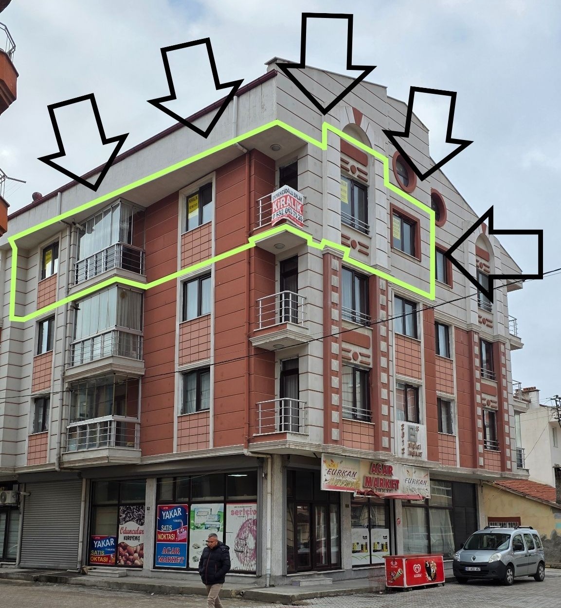 Afyonkarahisar Merkez Mecidiye Mahallesi’nde yer alan bu kiralık daire, rahat ve ferah bir yaşam sunuyor. Toplam brüt 95 m² kullanım alanına sahip olan dairemiz 2+1 planındadır. Dairemiz iki cepheli olup, ön cephesi kuzey–doğu, yan cephesi ise güney–doğu yönüne bakmaktadır. Bu sayede gün boyu doğal ışık alan, ferah bir yaşam alanı sunar. Dairede iki adet balkon bulunmaktadır. Bunlardan biri mutfakta yer almakta ve cam balkon ile kapatılmıştır. Salon bölümündeki balkon ise açık balkon olup keyifli vakit geçirebileceğiniz bir alana sahiptir. Isınma sistemi doğalgazlı kombi olup, kombi ECA markadır. Bina asansörlüdür ve yaklaşık 10 yıllık bir yapıdır. İç mekânda spot aydınlatmalı tavanlar modern ve şık bir atmosfer oluştururken, banyoda duşakabin bulunmaktadır. Merkezi konumu, kullanışlı planı ve ferah yapısıyla öne çıkan bu daire, Mecidiye Mahallesi’nde kiralık daire arayanlar için fırsattır. Detaylı bilgi ve yerinde görmek için bizimle iletişime geçebilirsiniz.